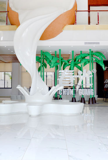 椰子文化館中主要設(shè)有海南物產(chǎn)文化、椰子科普知識(shí)、海南奇椰趣聞、春光品牌簡(jiǎn)介、海南工藝品展示等幾個(gè)部分,客人們能在這個(gè)區(qū)域了解到海南特色的風(fēng)俗文化以及椰子的相關(guān)知識(shí)。另外,椰子王國(guó)是春光食品又一重要生產(chǎn)基地,這里主要生產(chǎn)椰子風(fēng)味餅干、糖果與菠蘿蜜干等產(chǎn)品,其生產(chǎn)線均由丹麥、瑞典、意大利、荷蘭等歐洲國(guó)家引進(jìn),并透過(guò)透明的玻璃向客人全方位展示生產(chǎn)實(shí)景。