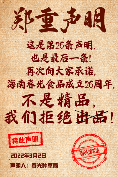 此外,春光食品在產(chǎn)品生產(chǎn)過(guò)程中推崇用好料、用足料、不忘初心、始終如一的研發(fā)和生產(chǎn)方針,產(chǎn)品拒絕添加香精、色素、防腐劑等,進(jìn)一步滿足了消費(fèi)者對(duì)于健康飲品和美味的需求。